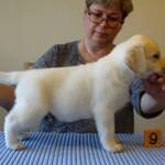 “Suurepärast tüüpi ja kasvu rühikas 6-kuune isane kutsikas, tugev hästi väljendunud kael, veel veidi eakohaselt pehme seljajoon, õige ilme, tumedate silmadega pea, korrektsed kõrvad ja hambumus, suurepärase asetusega õlad, hea laiuse ja sügavusega ümar rinnakorv, suurepäraselt nurgistunud, suurepärane tihe ja liibuv ilusa värviga karv, paralleelne hea sammuga rõõmus liikuja, kes kasutab hästi oma saba, suurepärane tõuomane iseloom, suurepäraselt näidatud.” VSP-kutsikas.