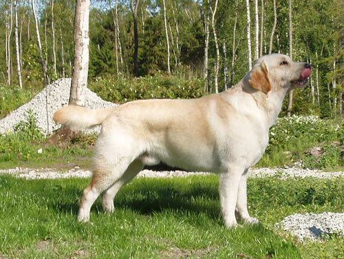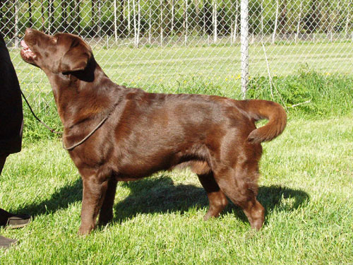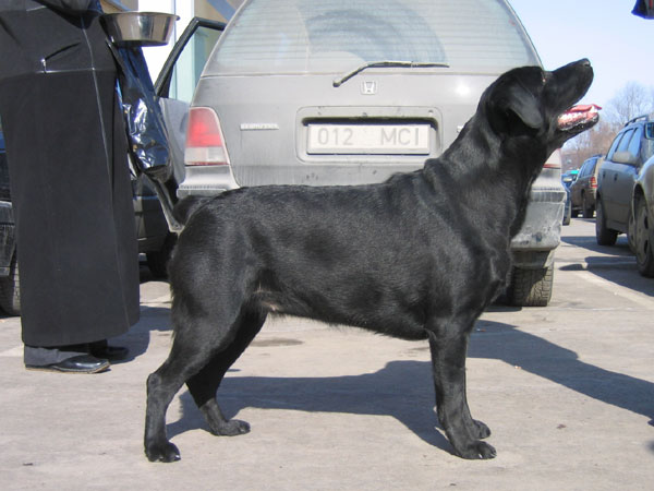 Keith Wallington (kennel Balnova, UK) 8.02.2004 Retriiverite erinäitus Tallinnas – “Super-looking dog from the side, deep in chest, good front legs, strong quarters, head could be softer, narrow when viewed on front, needs more spring of ribs” (avaklassi IV koht).
