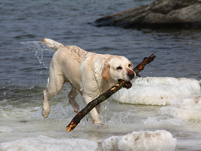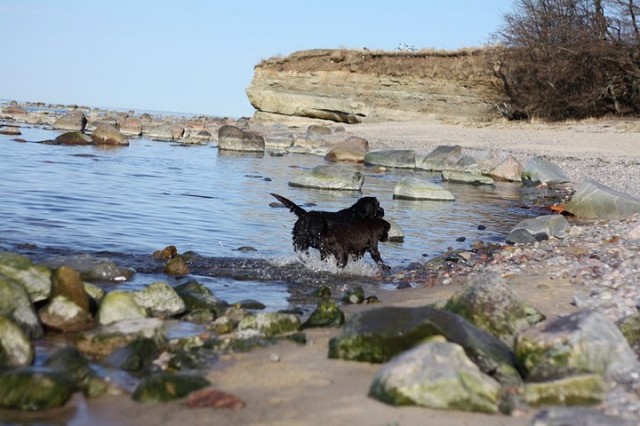 Swimming! A great way to keep joints, muscles and fur in good condition. Since we live so close to the sea, we naturally allow our dogs to swim as often as possible. It’s a 10-minute walk from our house to the sea and our dogs go swimming all year round, except when the sea is frozen. It may seem scary to watch dogs rush into the sea between pieces of ice at a temperature of -5 C and then run out a few minutes later, their fur tufts freezing in an instant. But in fact, it’s a great pleasure for dogs, they go into the water voluntarily, they are used to it and have never been cold. On the contrary, as a result of winter bathing, they grow very strong and dense fur that does not let cold water get close to their skin. This is quite logical when you think about what the job of the predecessors of Labradors, the St. John’s hounds, was – they dived into icy water to help pull out fishing nets and catch fish that escaped from the net.