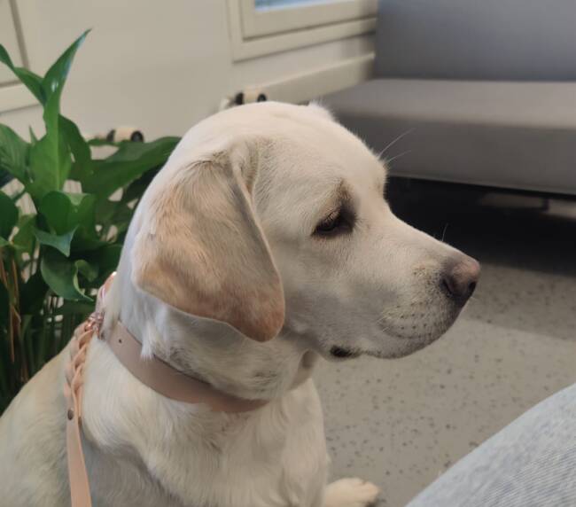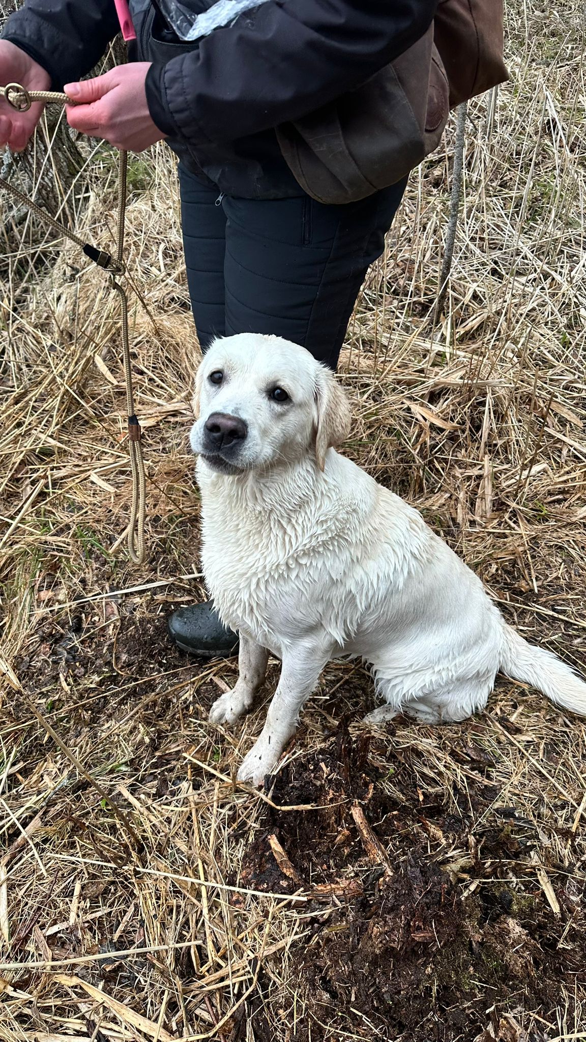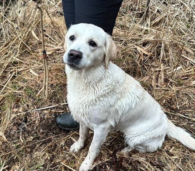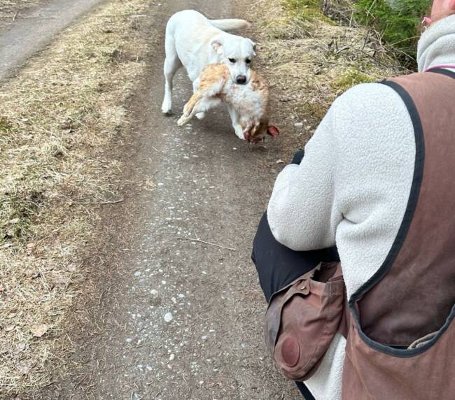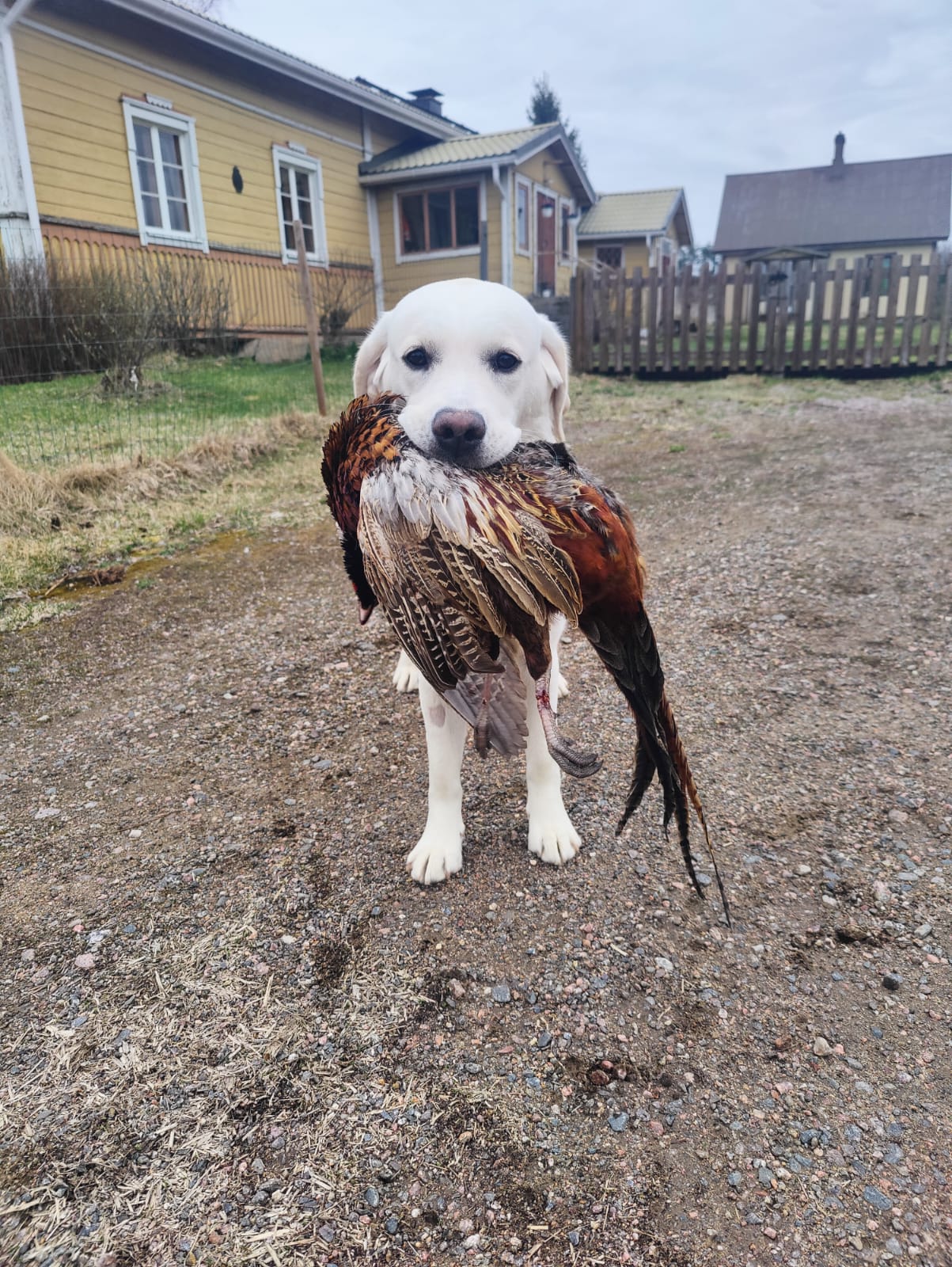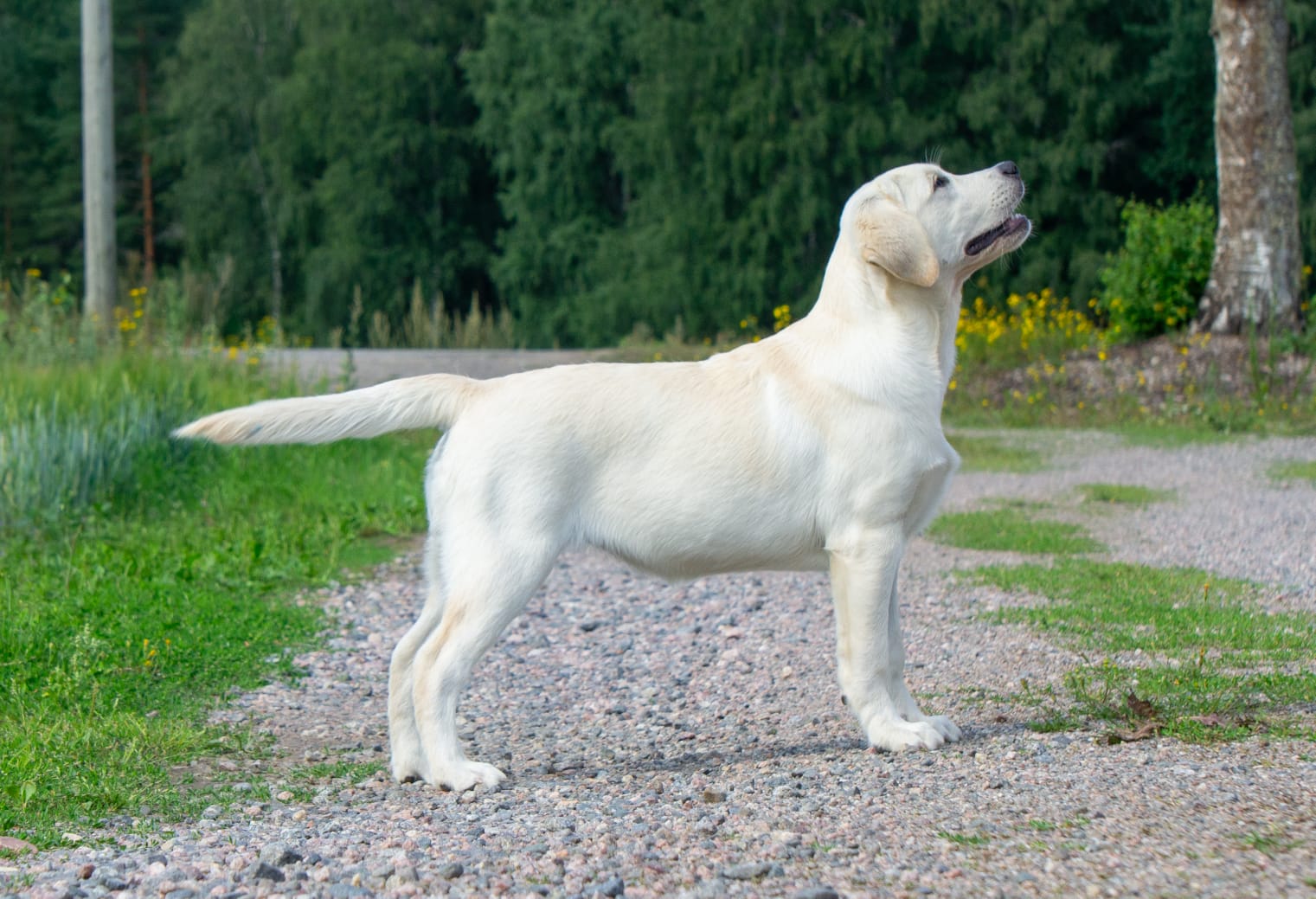 “Erinomainen tyyppi. Pehmeäilmeinen pää. Erinomainen pigmentti. Kokoon sopiva raajaluusto. Hyvät suorat eturaajat. Kaunis kaula. Lupaava eturinta. Hieman niukka pohjavilla tänään. Hyvät takakulmaukset. Lupaava rintakehän muoto. Käyttää häntäänsä niin voimakkaasti, että koko kroppa liikkuu. Esiintyy edukseen.”