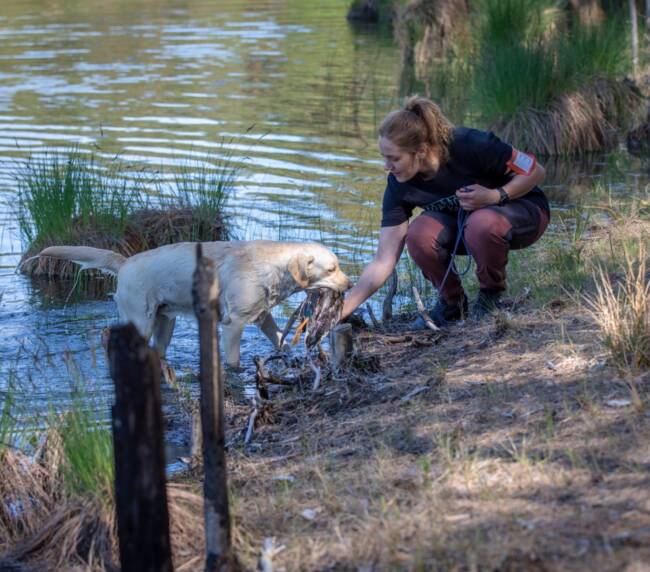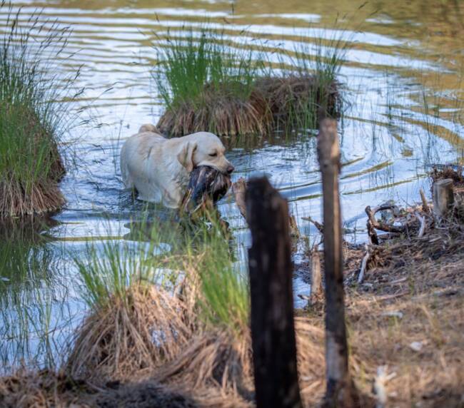 - Roxy on aktiivselt töötav jahikoer, kes toob märkimisväärse efektiivsusega ära linnud igasugusest maastikust ja veest