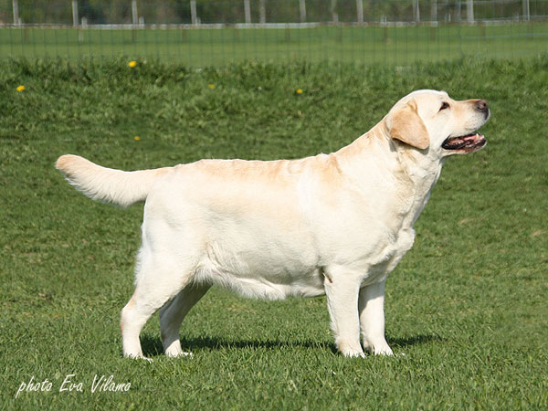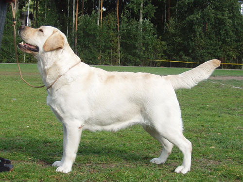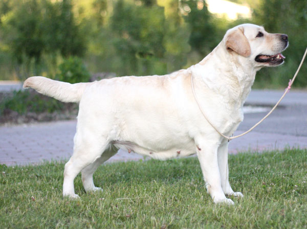 Tal on suurepärane tüüp ja kehaehitus, väga hea luustik ja suurepärane kasukas, võrratu ilme ja väga meeldiv iseloom. Ta on seltskonna hing ja valmis adopteerima iga last, jänes või kutsikat. Tõeline labrador! Meil on tõesti temaga väga vedanud.