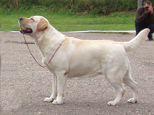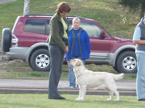Gunilla Ek (SW, kennel Attikonak) Labradoride erinäitus 9.11.08 –“5,5 years old yellow, what a lovely old-fashioned girl, lovely head and expression, excellent neck and shoulder placement, topline and tail-set, so well angulated fore and after, lovely width of second thigh, excellent bone and feet, lovely roomy ribcage, excellent coat and texture, moves very well, oh, what a lovely bitch!” (ERINÄITUSE VÕITJA).